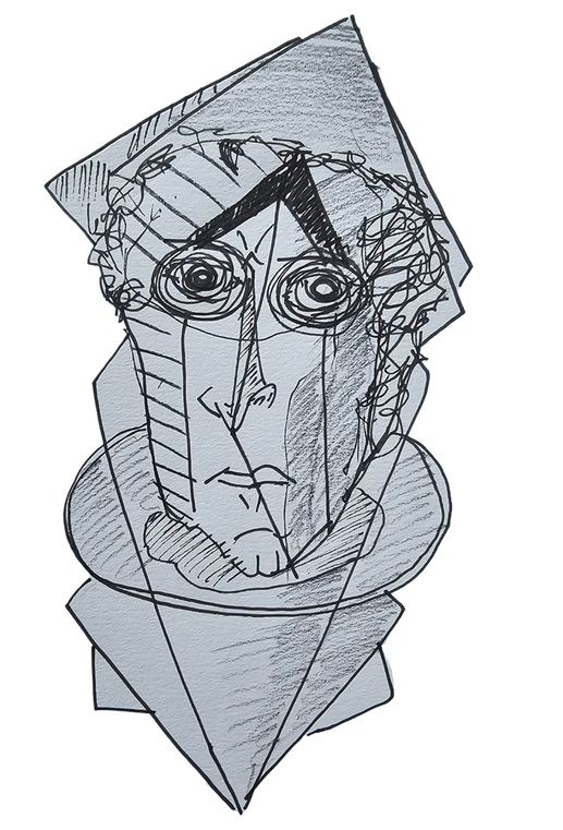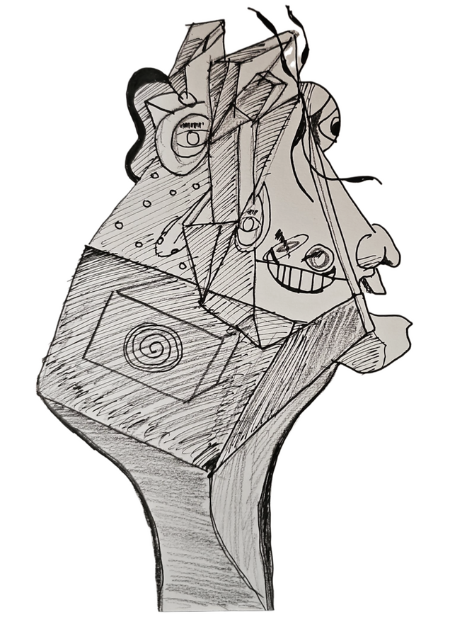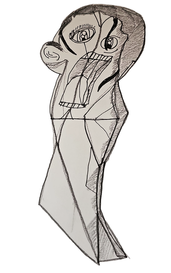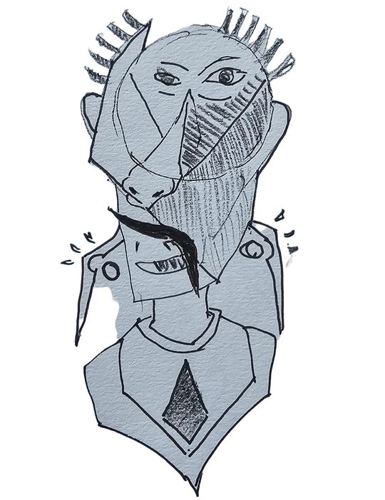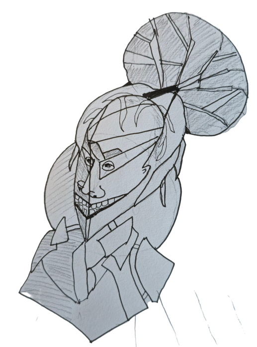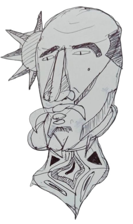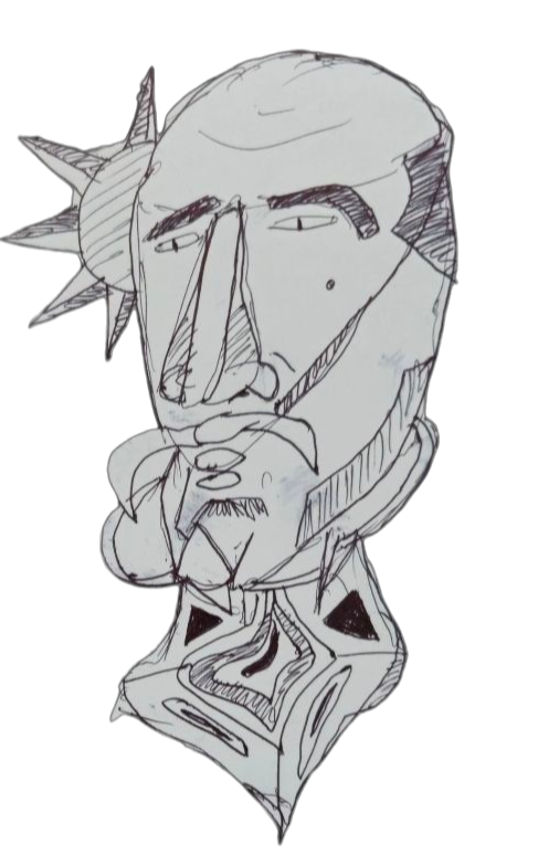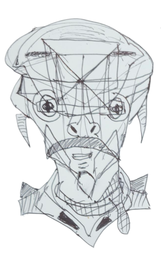 andrej's art-style from the period of 2018-2021 would feature a lot of uneven and unfinished lining, bold and varied strokes and nearly schizophrenic patterning works in an attempt to capture the essence of the kastro universe